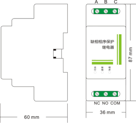 當(dāng)發(fā)生缺相、錯相等故障時(shí),繼電器釋放,對應(yīng)的故障燈亮起。